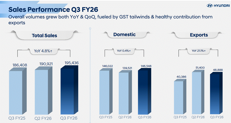 Furthermore, while Hyundai currently does not export vehicles to Europe, management noted that it is closely evaluating the India-EU Free Trade Agreement. If favorable, this could allow it to use India as a production hub to export vehicles to the European market in the future. Its financials were moderate in Q3FY26.