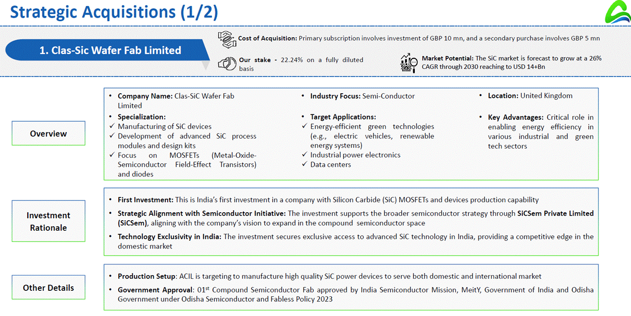 The ground breaking ceremony was conducted on 1 November 2025, with completion expected within 30 months. Archean gains a competitive advantage through a strategic collaboration with UK-based Clas-SiC Wafer Fab. This investment provides Archean with exclusive access to advanced SiC technology, including the development of process modules and design kits.