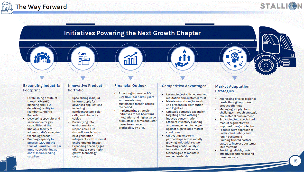 Stallion is strategically entering the semiconductor gas market as a key component of its forward integration roadmap. This initiative is designed to address India’s emerging technology needs in electronics, solar cells, and fiber optics.