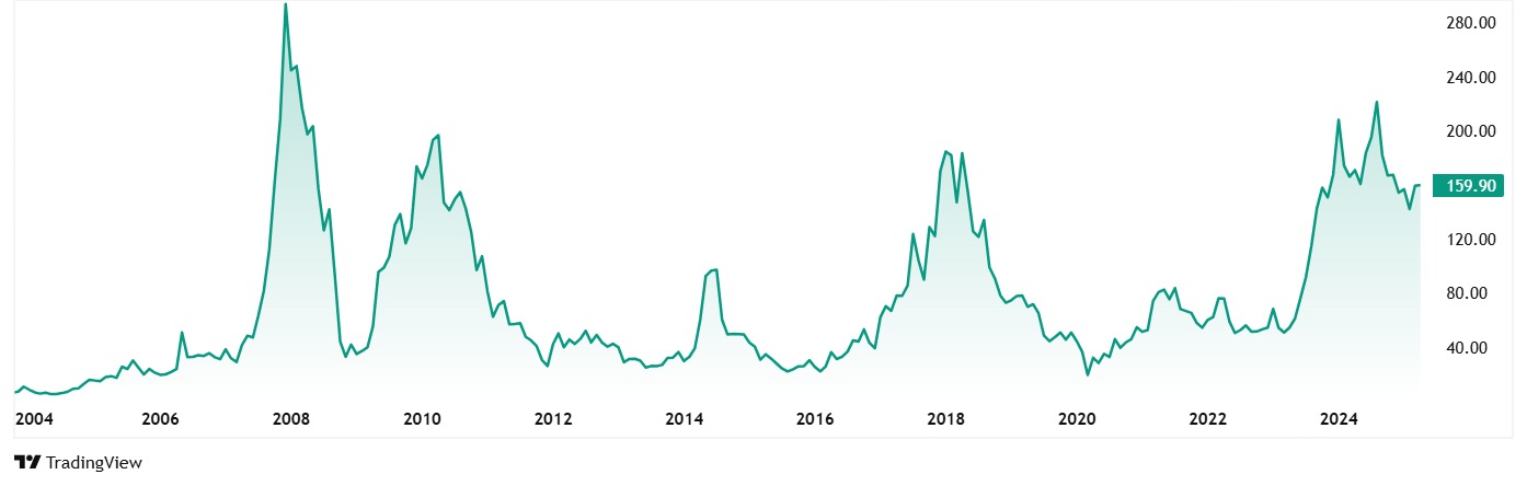 The share price of Prakash Industries saw a jump of around 566% from its 5-year-old price of Rs 24 to its current day price of 160 (as on closing of 9th April 2025).