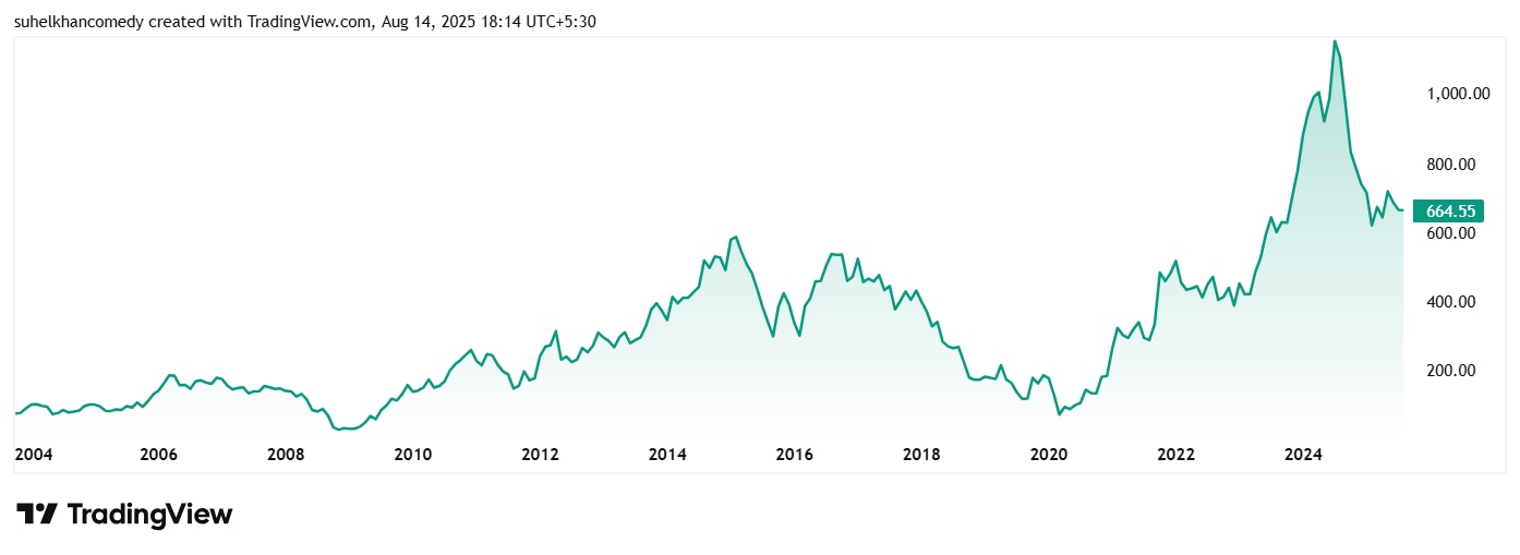 The share price of Tata Motors Ltd was around Rs 125 in August 2020 which has grown to its current price of Rs 665 as of closing on 14th August 2025. That is a jump of 425%.