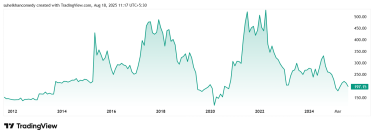 The EBITDA (earnings before interest, taxes, depreciation, and amortization) also saw some good years but saw a decline in FY25.