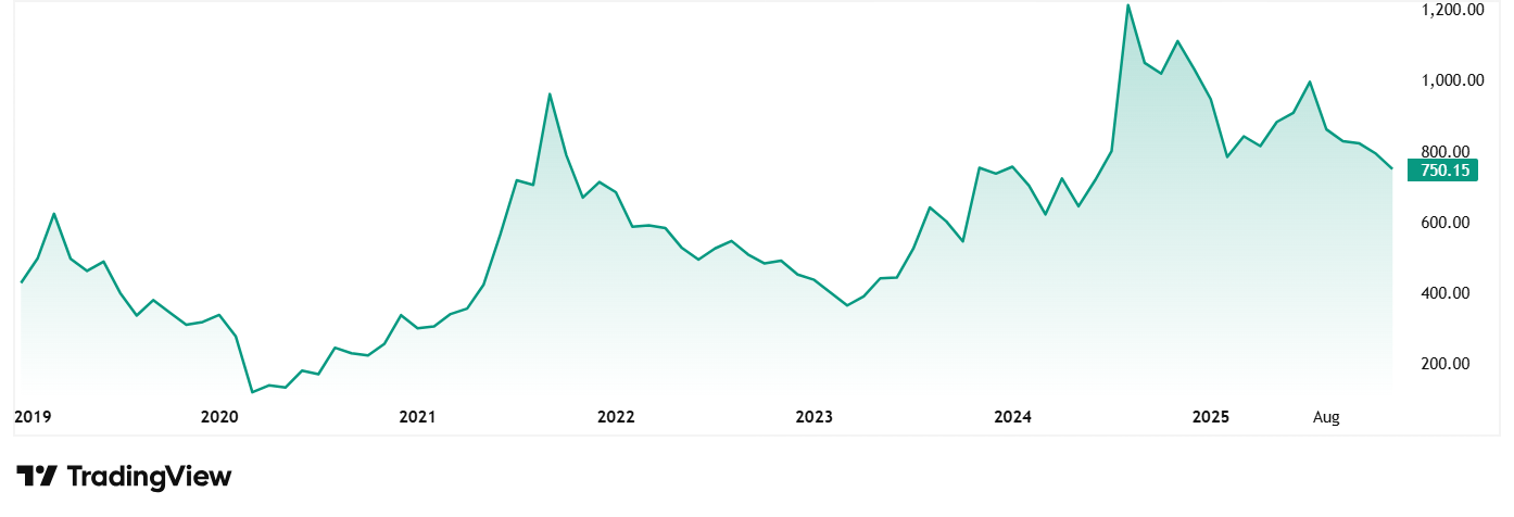 The share price of RPSG Ventures Ltd jumped from around Rs 270 in December 2020 to its current price of Rs 755 as on 12th December 2025. That is a jump of 180%.