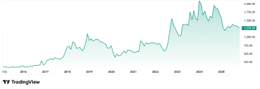 At the current price of Rs 1,276, the share is trading at a discount of 52% from its all-time high price of Rs 2,652.
