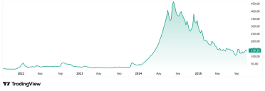 At the current price, the share is trading at a discount of about 72% from its all-time high price of Rs 495.