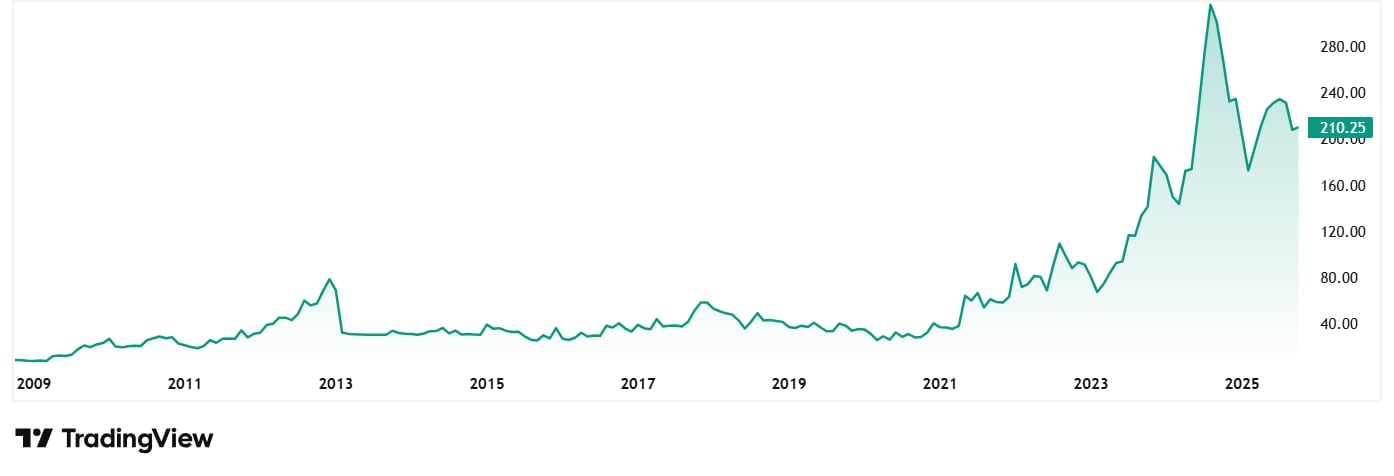 The share price of 20 Microns Ltd was around Rs 28 in October 2020 and as on closing of 24th October 2025, it was Rs 211, logging in a jump of 654%.
