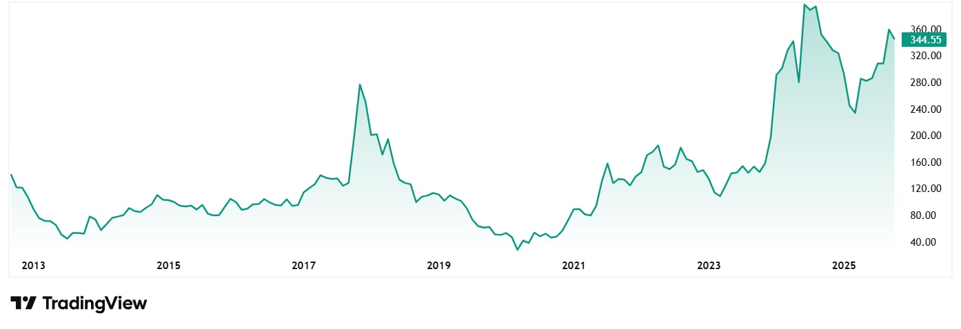 The share price of Zuari Industries Ltd was around Rs 52 in October 2020 and as on closing of 24th October 2025, it was Rs 344, which is a jump of 562%.