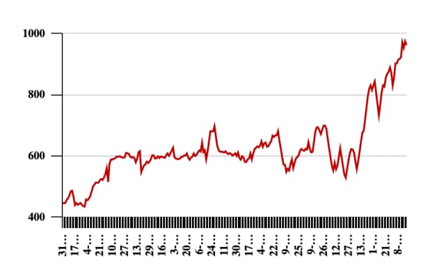 The stock touched its 52-week high of Rs 998 on 1 January 2025 and a 52-week low of Rs 416.2 on 8 December 2025.