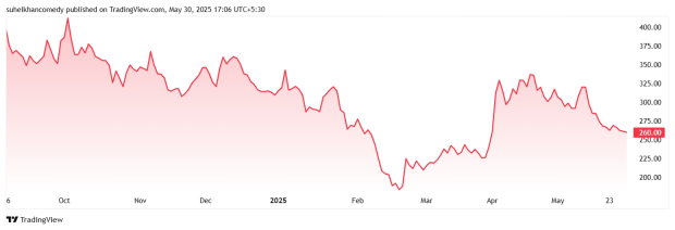 At the current price of Rs 258, the company’s share is trading at a discount of 40% from its all-time high of Rs 431.