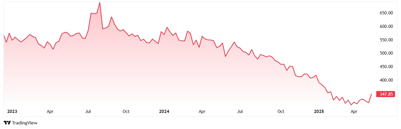 Uniparts India’s shares were listed in December 2022 at around Rs 570, and as of closing on 15th May 2025, the price was Rs 348, which is a drop of about 39% since listing.