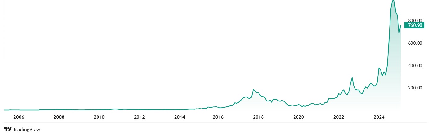 As for the share price, the current price is Rs 759 (as on 5th February 2025), which is huge 1,280% higher when compared to its 5-year-old price of around Rs 55.