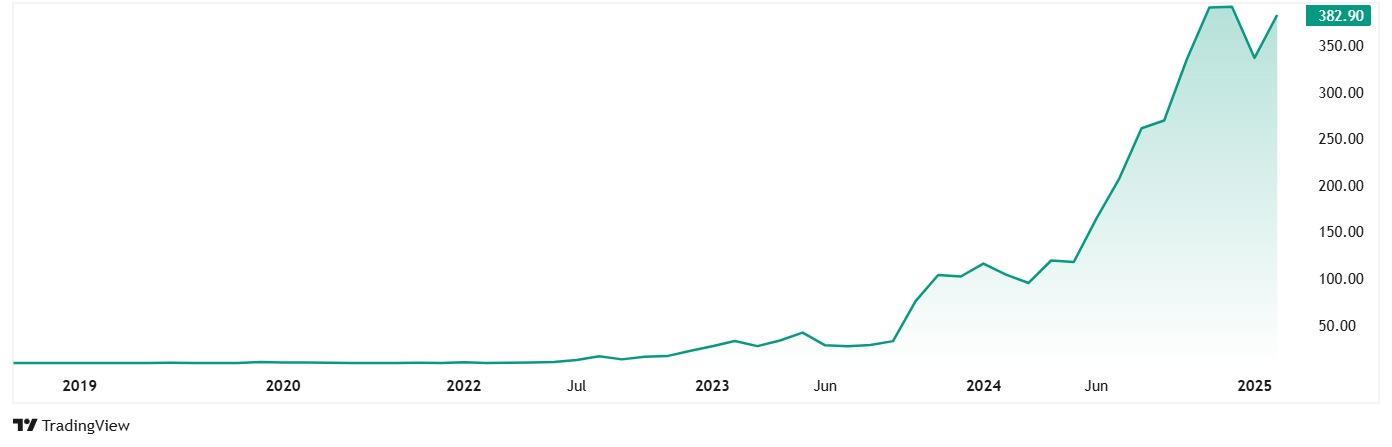 Let’s look at the how these numbers reflected in the stock prices, which grew from Rs around Rs 10 in February 2020 to its current price of Rs 365 (as on 5th Feb 2025). This is a compounded growth of a staggering 104% in just 5 years.