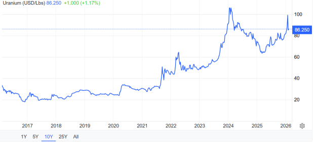 Uranium Price (US$/lbs) – 10 Years
