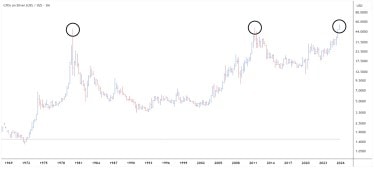 By early 1980, the Hunt brothers reportedly controlled almost one-third of the world’s deliverable silver, sending prices soaring to nearly $48 per ounce, a massive rally from under $6 just a few years earlier.