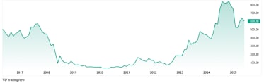 Even at the current jump, the stock is trading at a discount of over 45% from its all-time high of Rs 1,099.