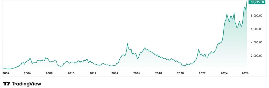 The share price of Dynamatic Technologies Ltd was around Rs 901 in February 2021 and as on 23rd February 2026 it was Rs 10,290, which is a 1,042% jump in 5 years. Rs 1 lakh invested in the company 5 years ago would have been close to Rs 11.5 lakhs today.