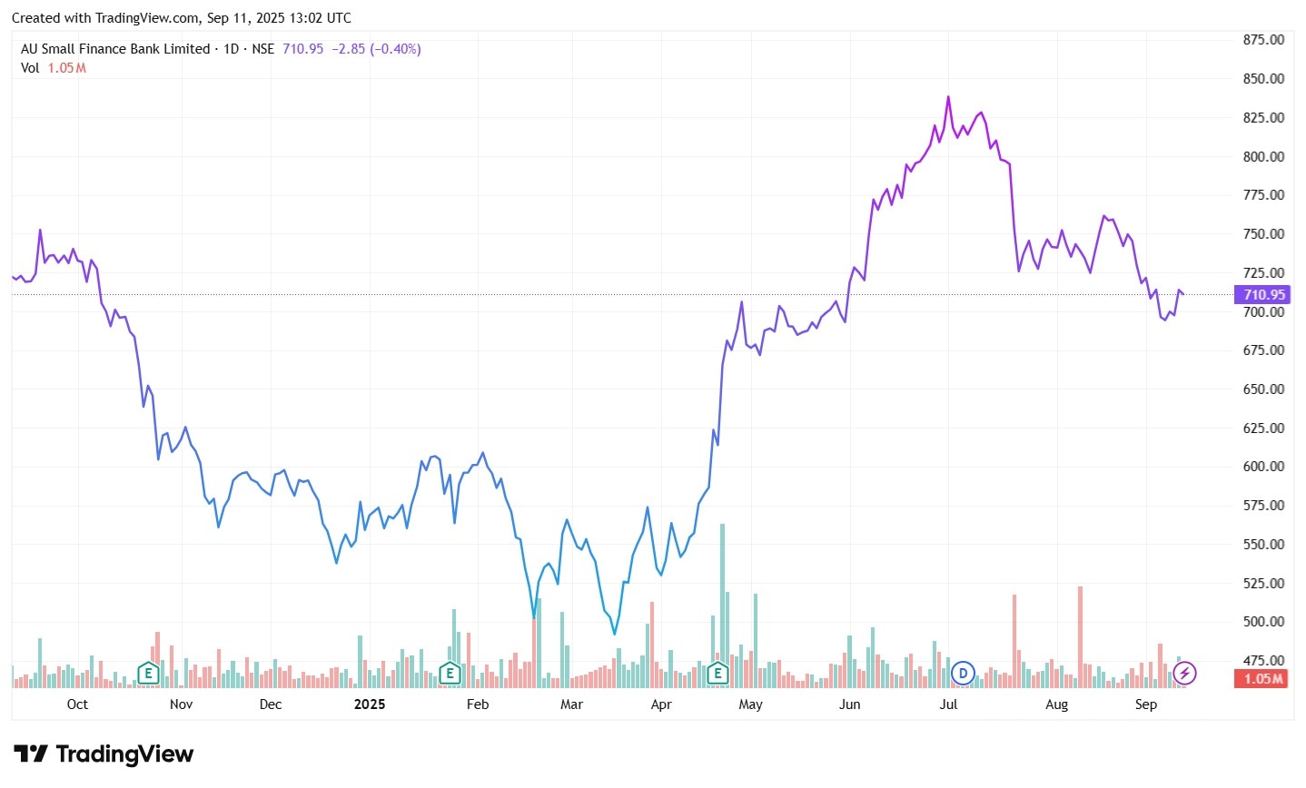 1-Year Share Price Chart of AU Small Finance Bank