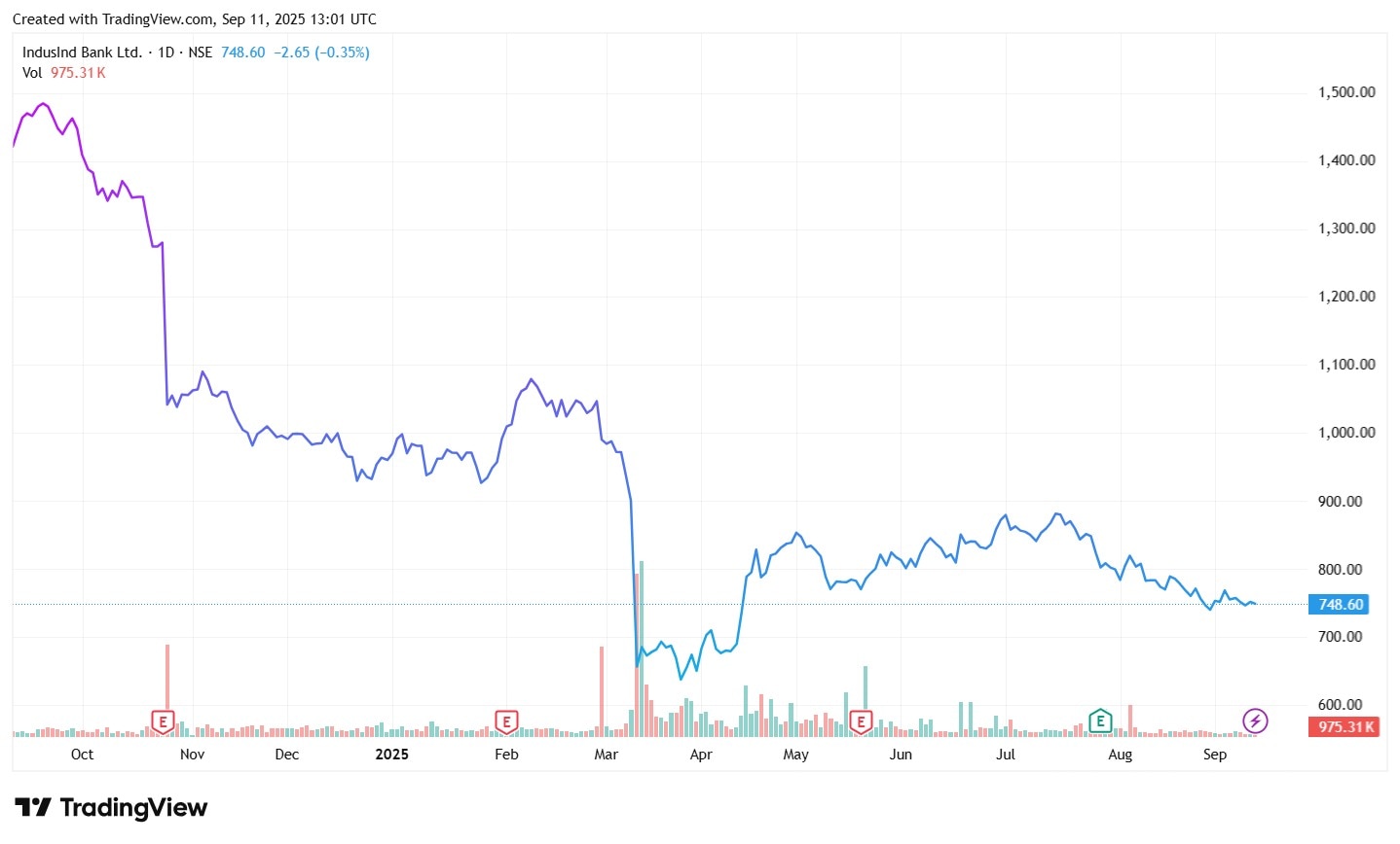 IndusInd Bank Ltd. is the 5th largest private sector bank according to market capitalization, catering to the needs of both retail and corporate clients. It has a diversified portfolio of loan products and deposits. The customer base for the bank stood at 42 million at the end of July 2025, up from 41 million in May 2025.