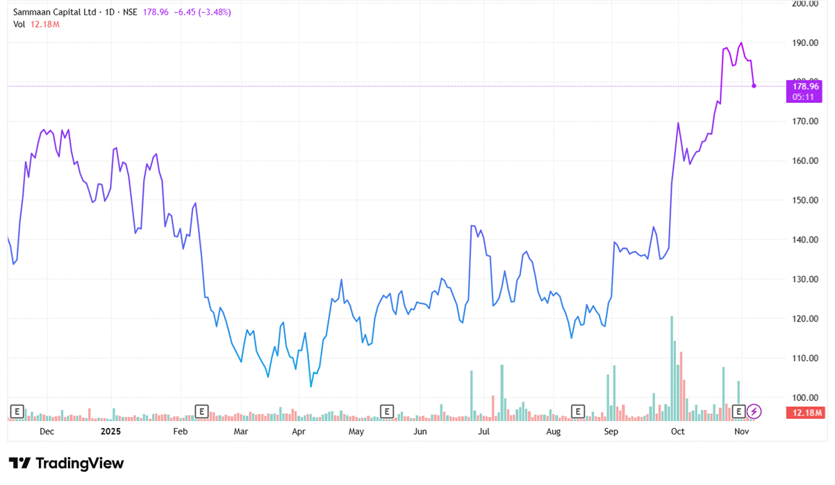 1-year Share Price Chart of Sammaan Capital Ltd.