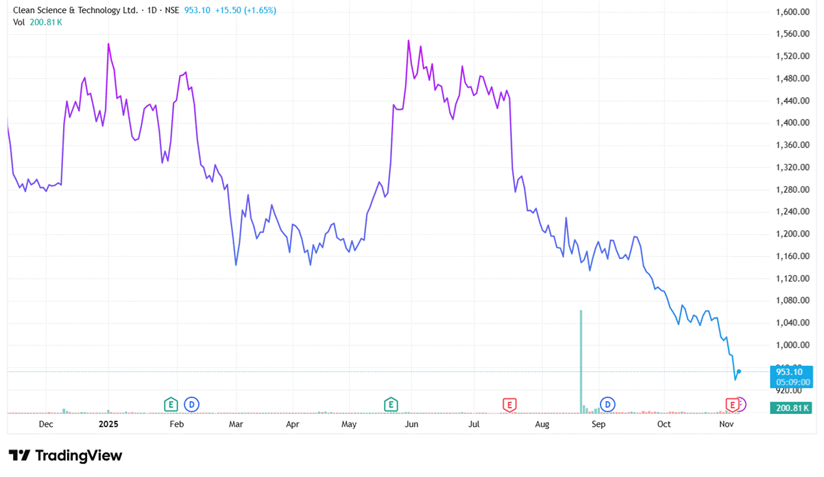 1-year Share Price Chart of Clean Science & Technology Ltd.