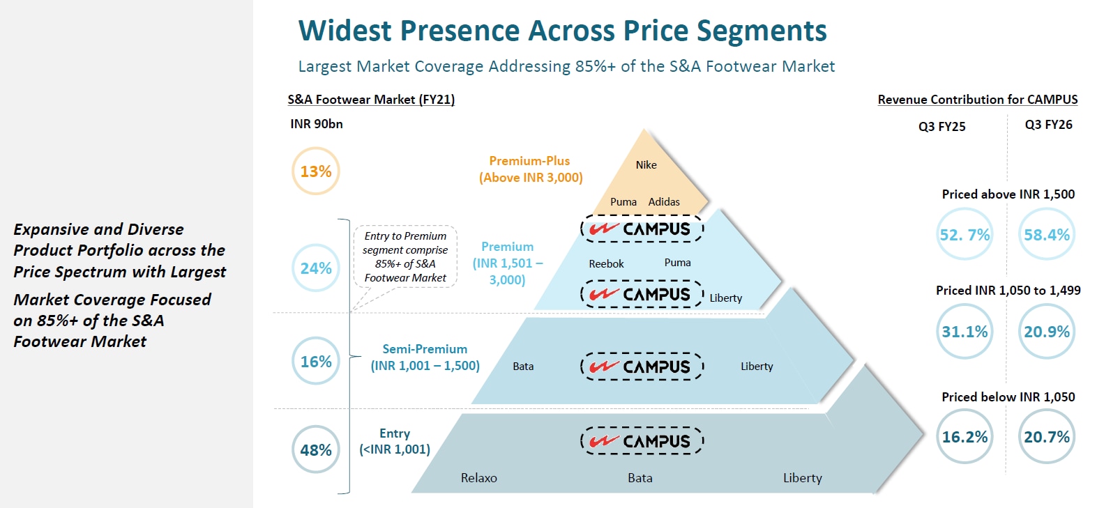 Management is highlighting that very few manufacturing setups in India are currently capable of producing footwear of this specific quality. Campus reported strong growth in Q3FY26.