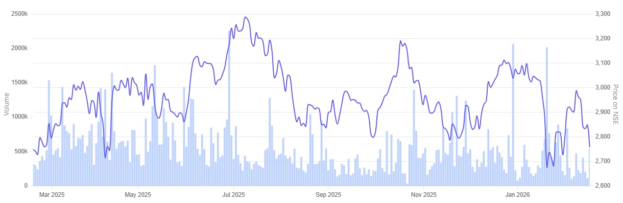 SRF 1 Year Share Price Chart
