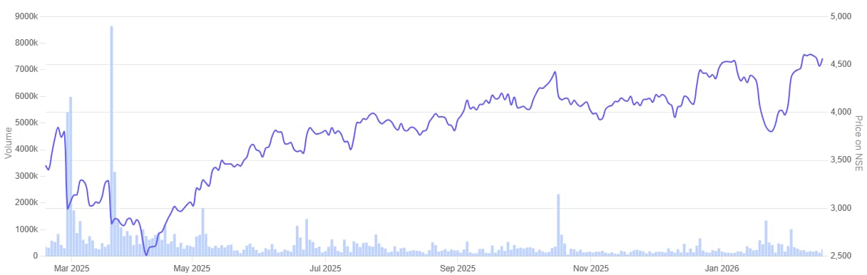 Navin Fluorine International 1 Year Share Price Chart