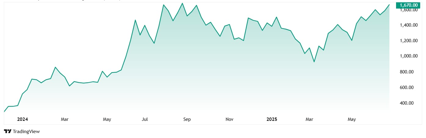 The share price of Amic Forging Ltd was about Rs 277 when it was listed in December 2023. And as of 2nd July 2025, the price is Rs 1,671, which is a jump of 503%.