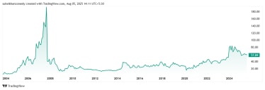 The share prices for Advani Hotels & Resorts India Ltd were around Rs 20 in August 2020, and as on 5th of August 2025, it was Rs 58, which is a 190% jump in 5 years. Rs 1 lac invested in the stock 5 years ago would have been close to Rs 3 lacs today.
