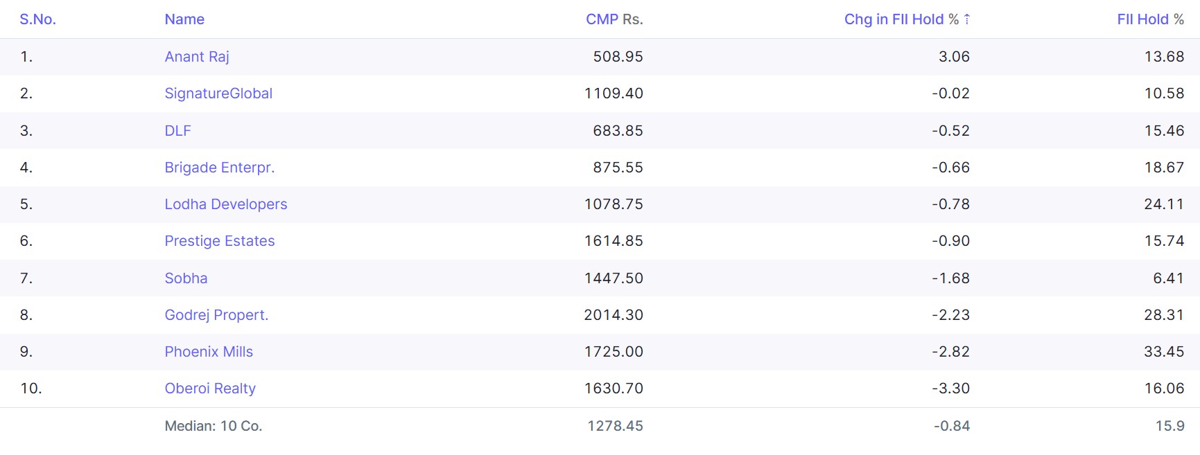 Nifty Realty Stocks: A FII Check