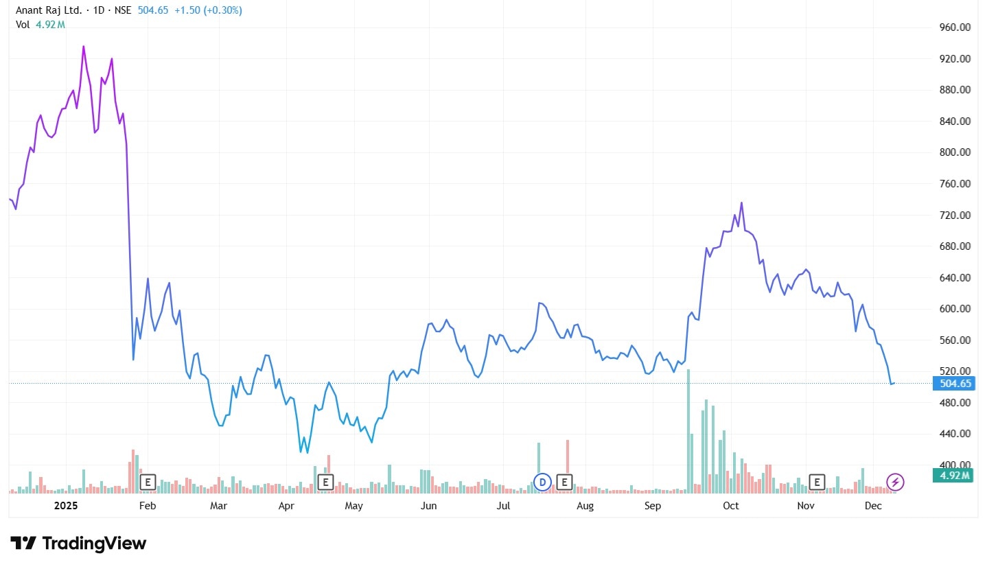 1-year Share Price Chart of Anant Raj Ltd.