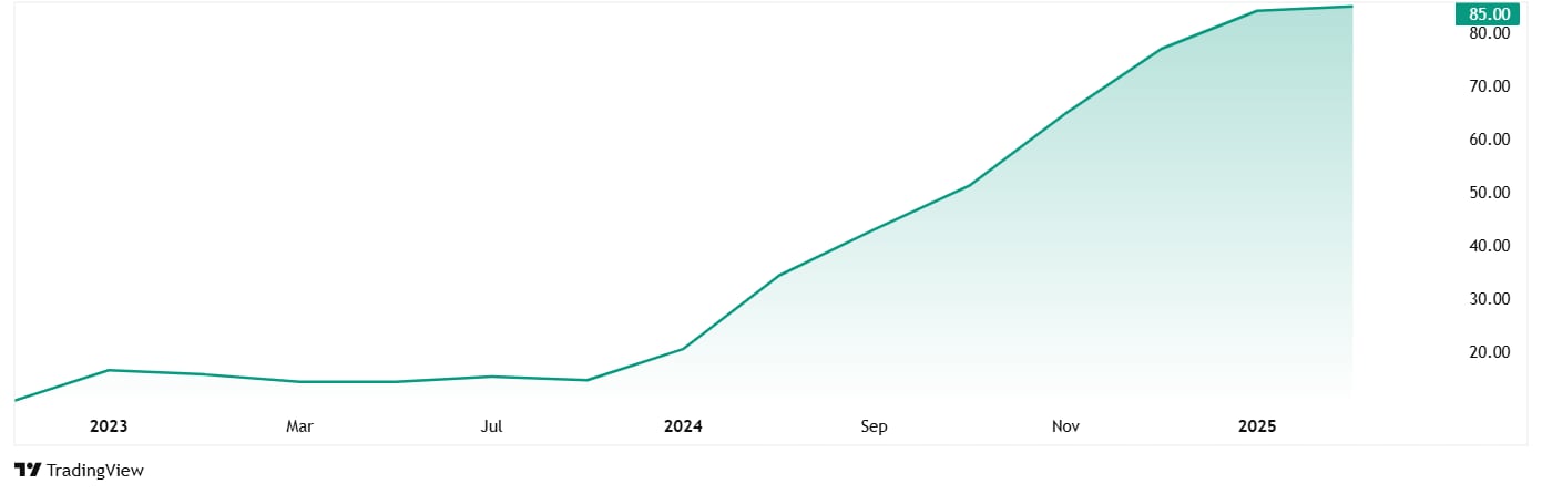 Listed at the price of around Rs 8 in December 2022, the share price of the company (Banganga Paper Industries Ltd) is Rs 85 as on closing of February 20, 2025. This is an absolute growth of 963% in just a little over 2 years.