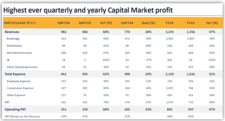 WM AUM has experienced remarkable growth in the last five years, expanding at a more than 50% CAGR. By the end of FY24, AUM had soared to an impressive ₹1.24 trillion. This figure surged 72% in the past year, highlighting the company’s strong performance and growing market presence.