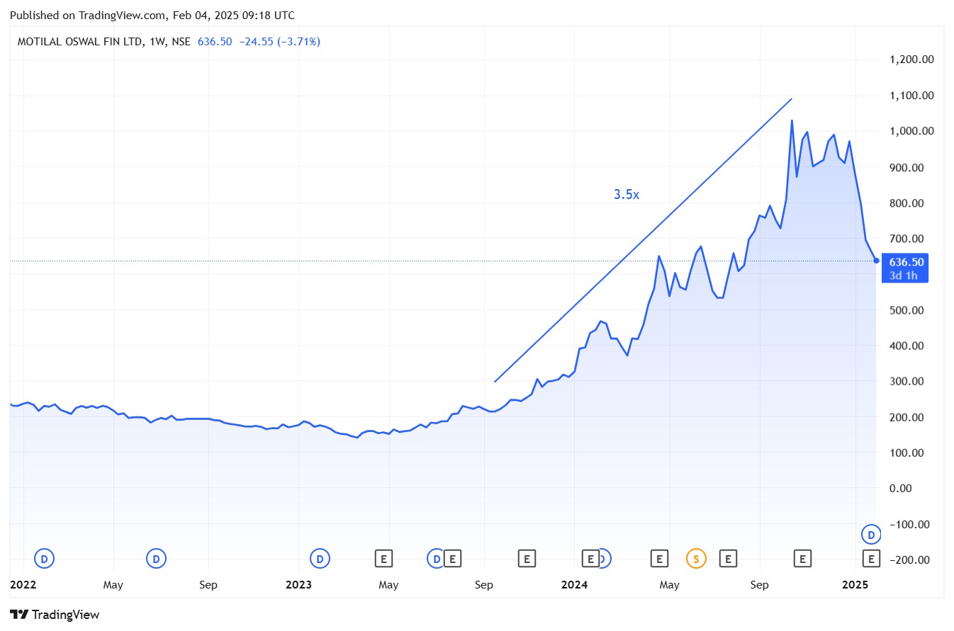 MOFSL share price surged 3.5x in the last 1.5 years before correcting