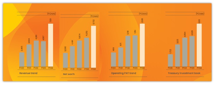 This approach ensures that the company has a vested interest, as it invests in all the offerings made to investors. Consequently, this strategy has resulted in significant growth in net worth over the past decade, which has increased at a CAGR of 22%, rising from ₹11.7 billion in FY14 to over ₹87 billion.