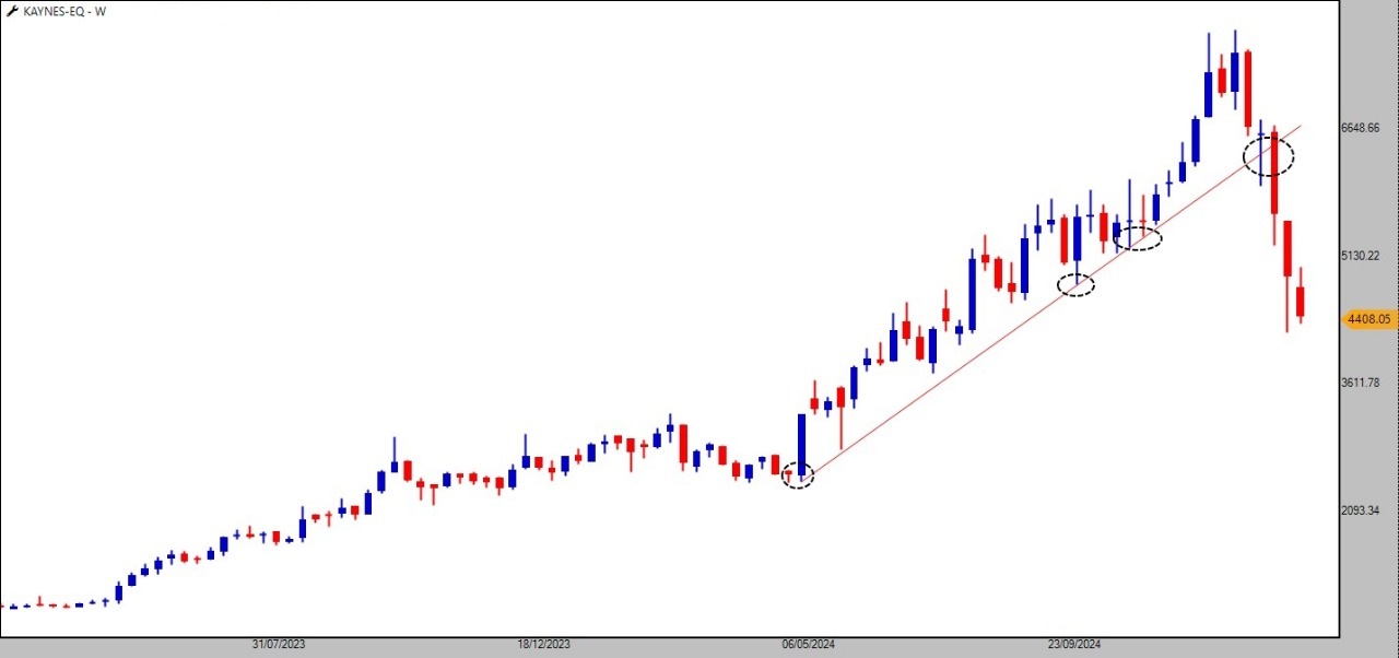 With a speed and intensity that suggest a potential extended downtrend, investors looking to capitalise on bullish movements should think twice before considering Kaynes during this phase of market reversal.