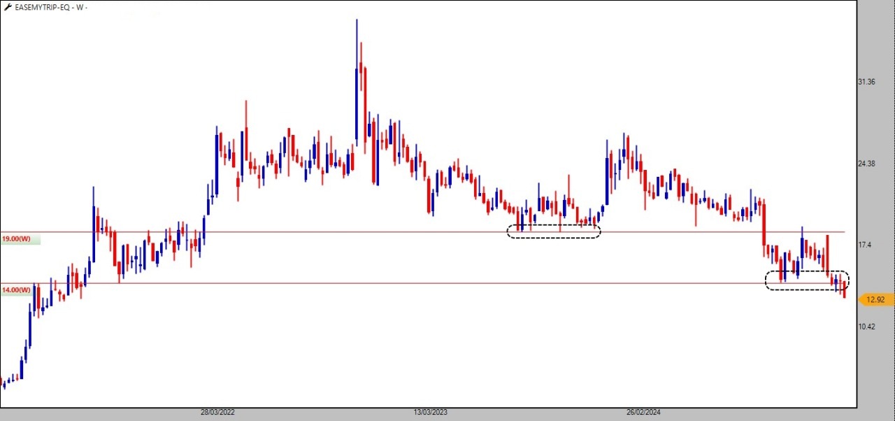 While EaseMyTrip’s fundamental story may be promising, the technical analysis tells a different tale. The stock is trading at a 52-week low, signalling potential trouble ahead.