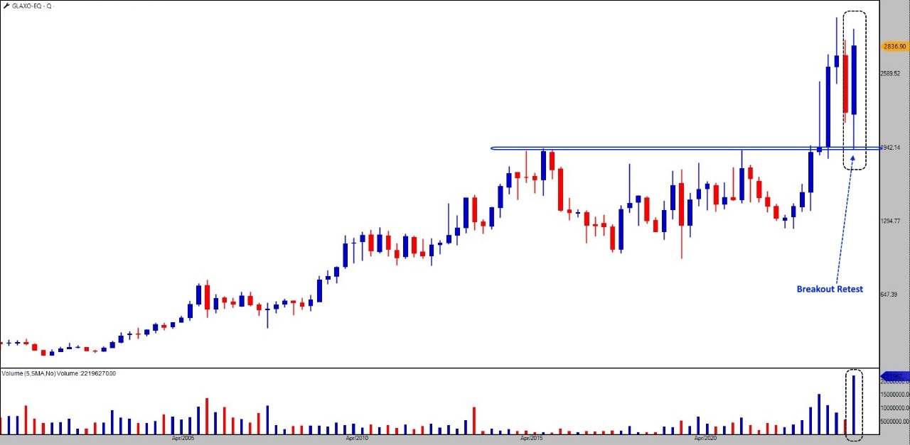 This quarter, GlaxoSmithKline’s stock price has risen by 23%, with a 294% increase in trading volumes over the previous quarter. The quarterly chart shows that the stock has retested its 2024 breakout and is trending upwards, presenting a potential opportunity for investors.