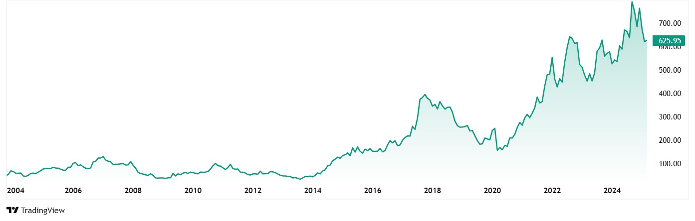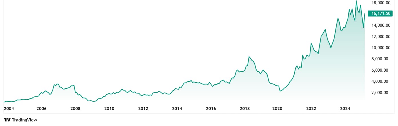 The share price of LMW is currently Rs 16,206 (as on closing of 22nnd March 2025), which is a 575% jump on its 5-year-old price of about Rs 2,400. The current price however is a 16% discount on the stocks all-time high price of Rs 19,200, which it had hit in late 2024.