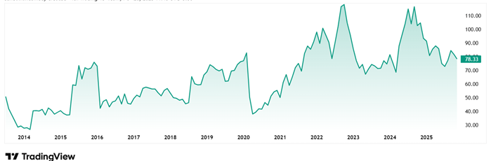 The share price of Aditya Birla Fashion & Retail Ltd was around Rs 56 in November 2020 and as on 20th November 2025 it was about Rs 79, which is a jump of 41%. However, the price has seen a drop between January and November 2025.