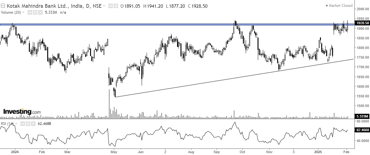 - Kotak Bank: Gearing up for another breakout attempt with strong support holding firm.