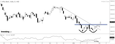 Ahead of the upcoming RBI policy announcement, Bank Nifty has formed a bullish reversal double-bottom pattern on the daily chart, accompanied by a bullish divergence on the 14-period RSI. Additionally, the price has broken out of a falling trendline, indicating growing strength. If Bank Nifty holds above the 49,700 level, it could trigger a sharp short-covering rally, potentially pushing prices towards the 51,000–51,500 range by the February monthly expiry.