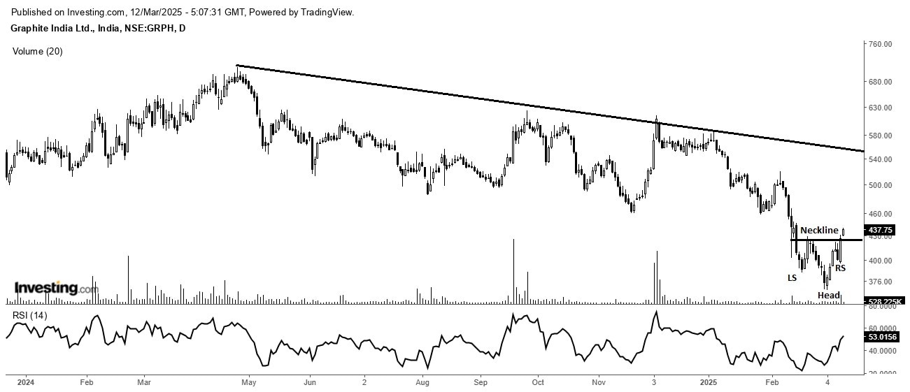 Graphite India remained under pressure in 2024, delivering a negative 48% return. However, the stock shows early signs of a potential turnaround, with bullish signals emerging on the daily chart.