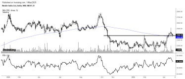 Britannia Ind saw a 40% return from April to October 2024, but the stock price dropped from ₹6,400 to ₹4,500. Despite this, signs of recovery are emerging. The stock has formed a bullish double bottom pattern and is trading above its 200-day moving average, suggesting a potential upward trend. The 14-period RSI has also moved into the bullish zone, indicating growing momentum. These signals point to a promising upside, making Britannia a potentially attractive option for recovery-focused investors.
