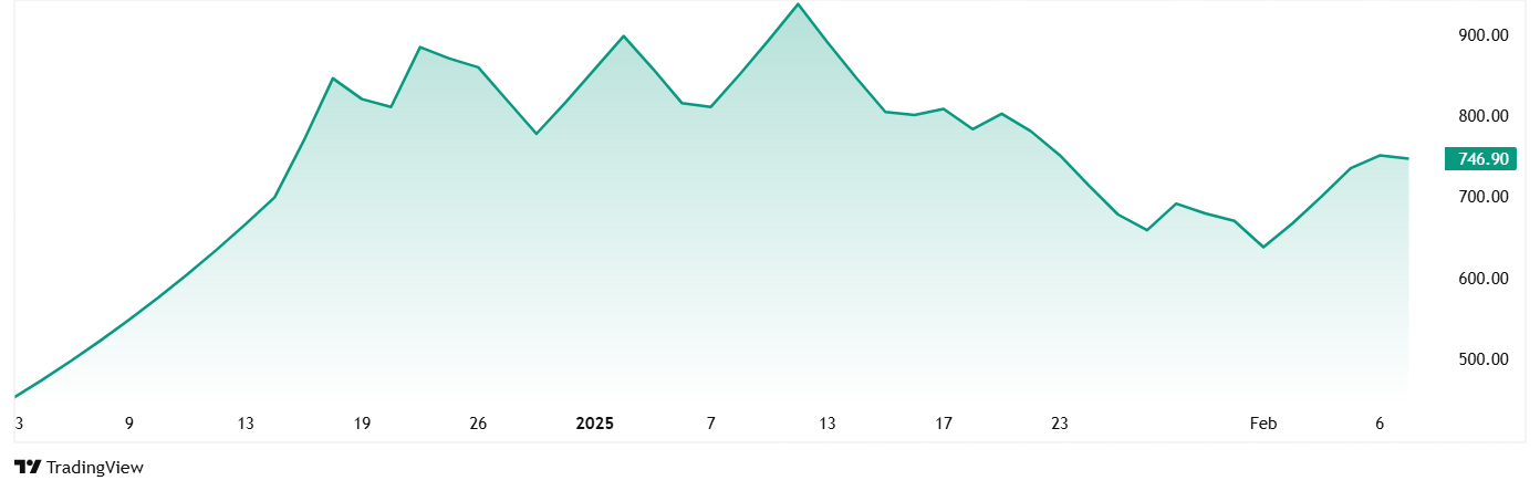 Listed in November 2024 at a price of around Rs 450 and as of the closing on 7th February 2025, C2C’s stock price was Rs 750 which is a jump pf 67% in just over two months.