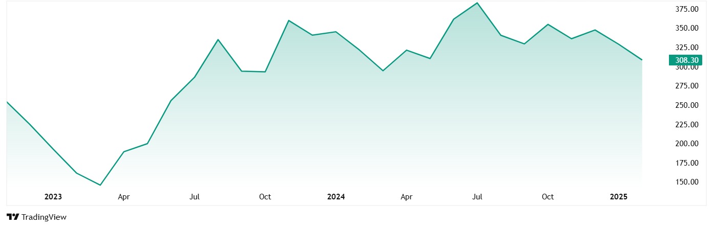 DSL was listed in November 2022 at a price of around Rs 307. It is currently at the same level, Rs 307 as on the closing of 7th February 2025, making it a flat growth.