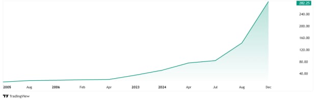 The company’s historical share price is not available on screener.in or the BSE website, but the price in December 2023 was around Rs 30, and as on 29th January 2025 it is at Rs 282. That is a jump of 840%.