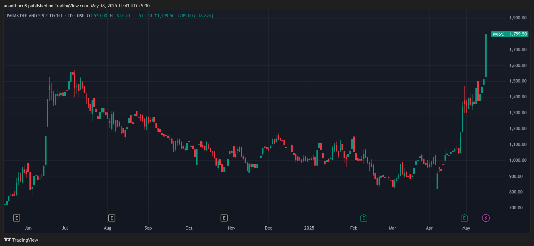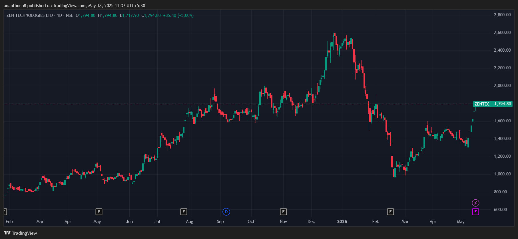 Zen Technologies has posted an almost 36% gain since May 7 to Rs 1,794.8. The stock has performed well over the last year with a near 86% gain. Zen Technologies focuses on providing combat training solutions for defence and security forces. This includes counter-drone solutions.
