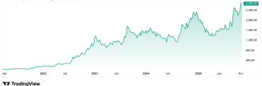 The share price of Knowledge Marine & Engineering Works Ltd went from Rs 37 at listing in March 2021 to its current price of Rs 2,716 as on 12th November 2025. That is a jump of a huge 7,240%. Rs 1 lac invested in this company in March 2021, would have been almost Rs 73.5 lacs today.