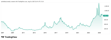At the current price of Rs 784, the company’s share is trading at a discount of about 45% from its all-time high price of Rs 1,444.